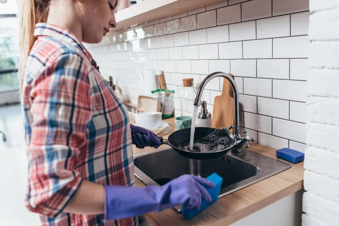 Granit tava ve tencereleri her kullanım sonrası ılık suyla yıkamak, en ideal temizlik yöntemidir. Ilık su, yemek artıklarını kolayca çözer ve yüzeyde kalıntı bırakmadan temizlenmesini sağlar. Dilerseniz birkaç damla nötr pH’lı bulaşık deterjanı kullanabilirsiniz.
