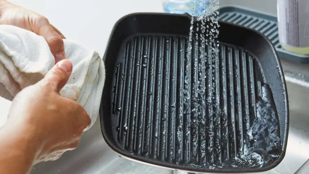Yüksek sıcaklıktaki tavaya asla soğuk su dökülmemelidir. Bu durum, metalin ani ısı şoku nedeniyle bükülmesine, hatta çatlamasına neden olabilir. Temizliğe başlamadan önce tavanın oda sıcaklığına yakın bir seviyeye soğuması beklenmelidir.