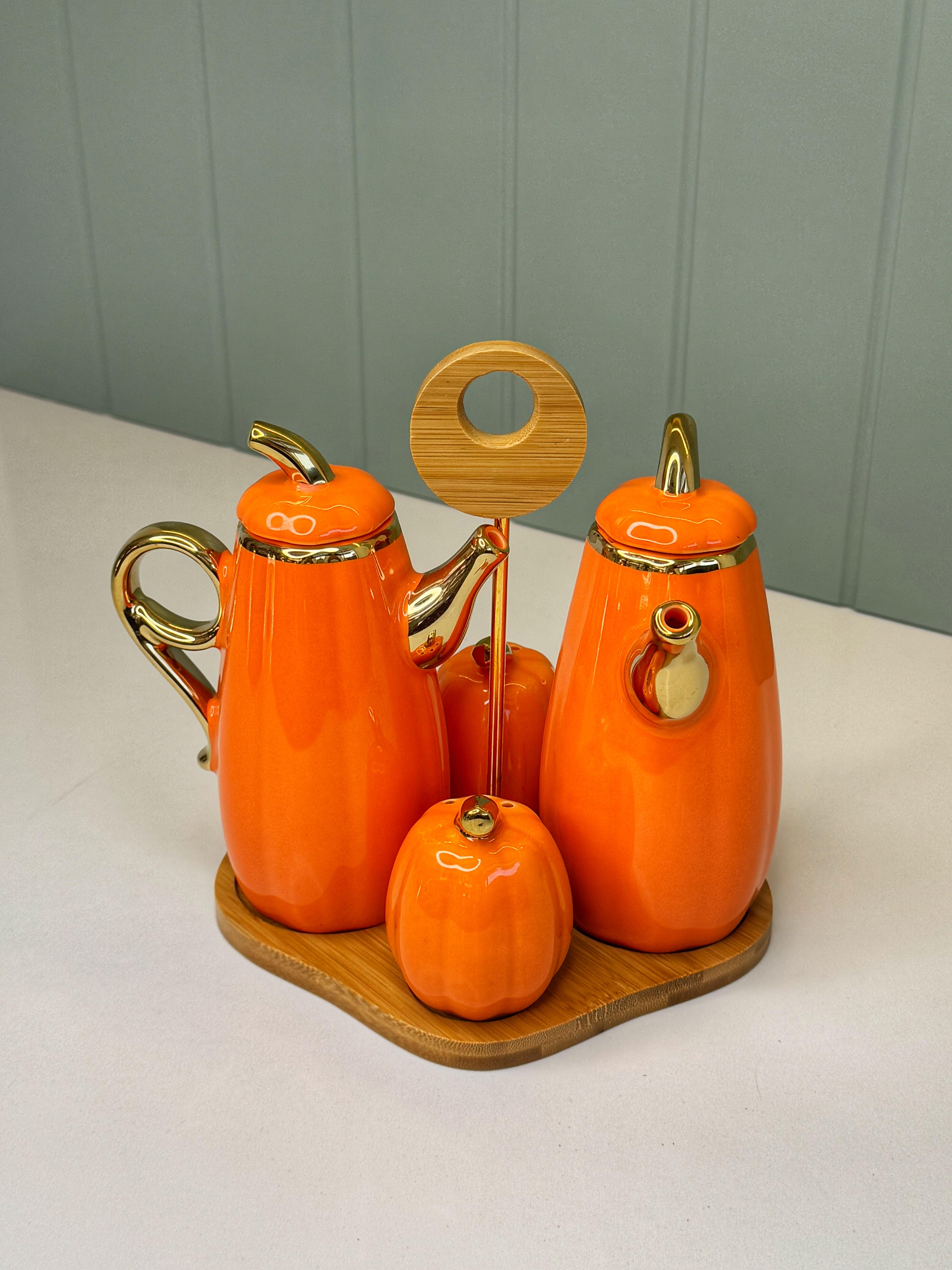 5 Parça Kabak Yağdanlık/Tuzluk Set Turuncu