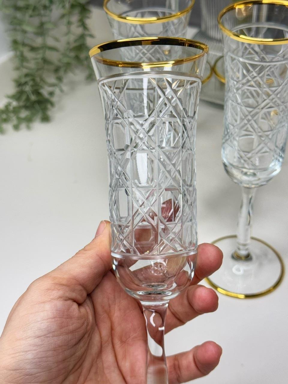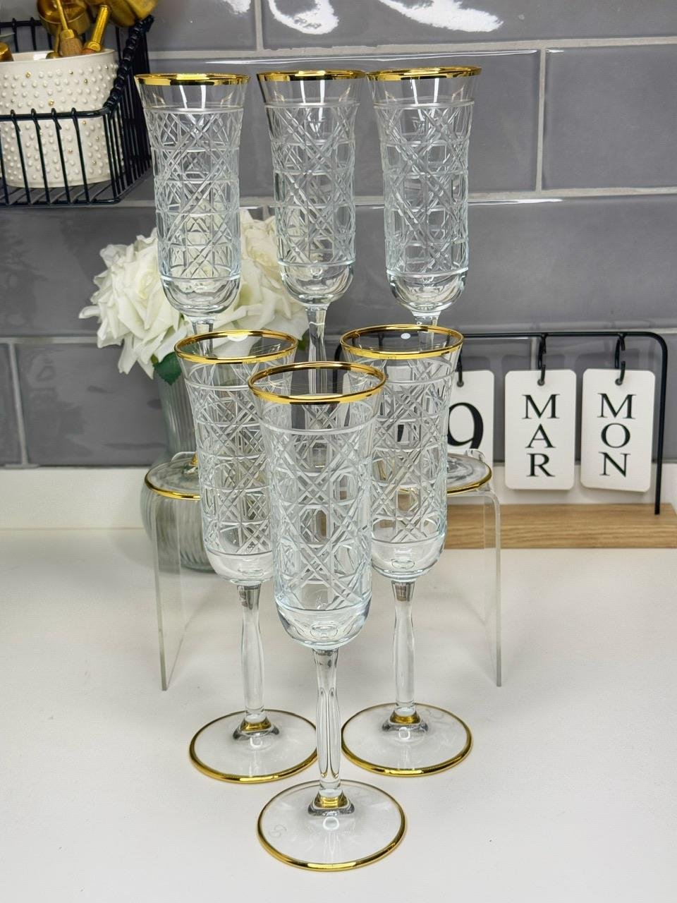 6 Lı Gold Detaylı Bella Desen Kahve Yanı Su Bardağı