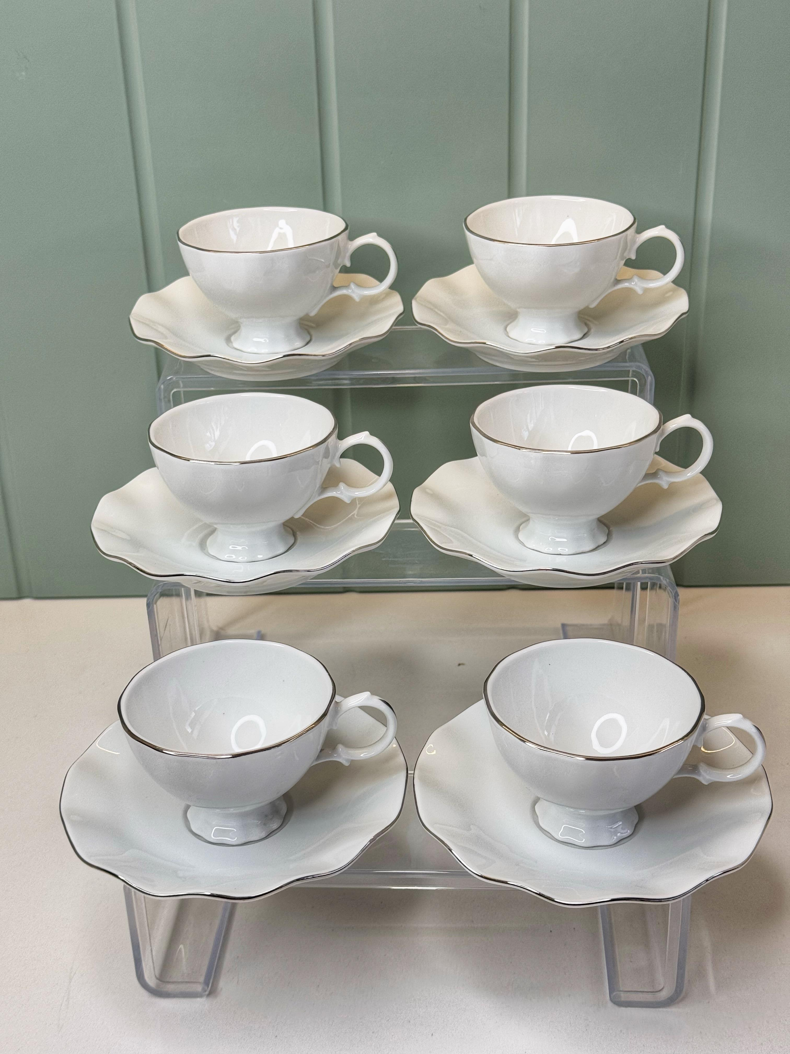 Lotus 6 Kişilik Gümüş Detaylı Porselen Türk Kahvesi Fincanı