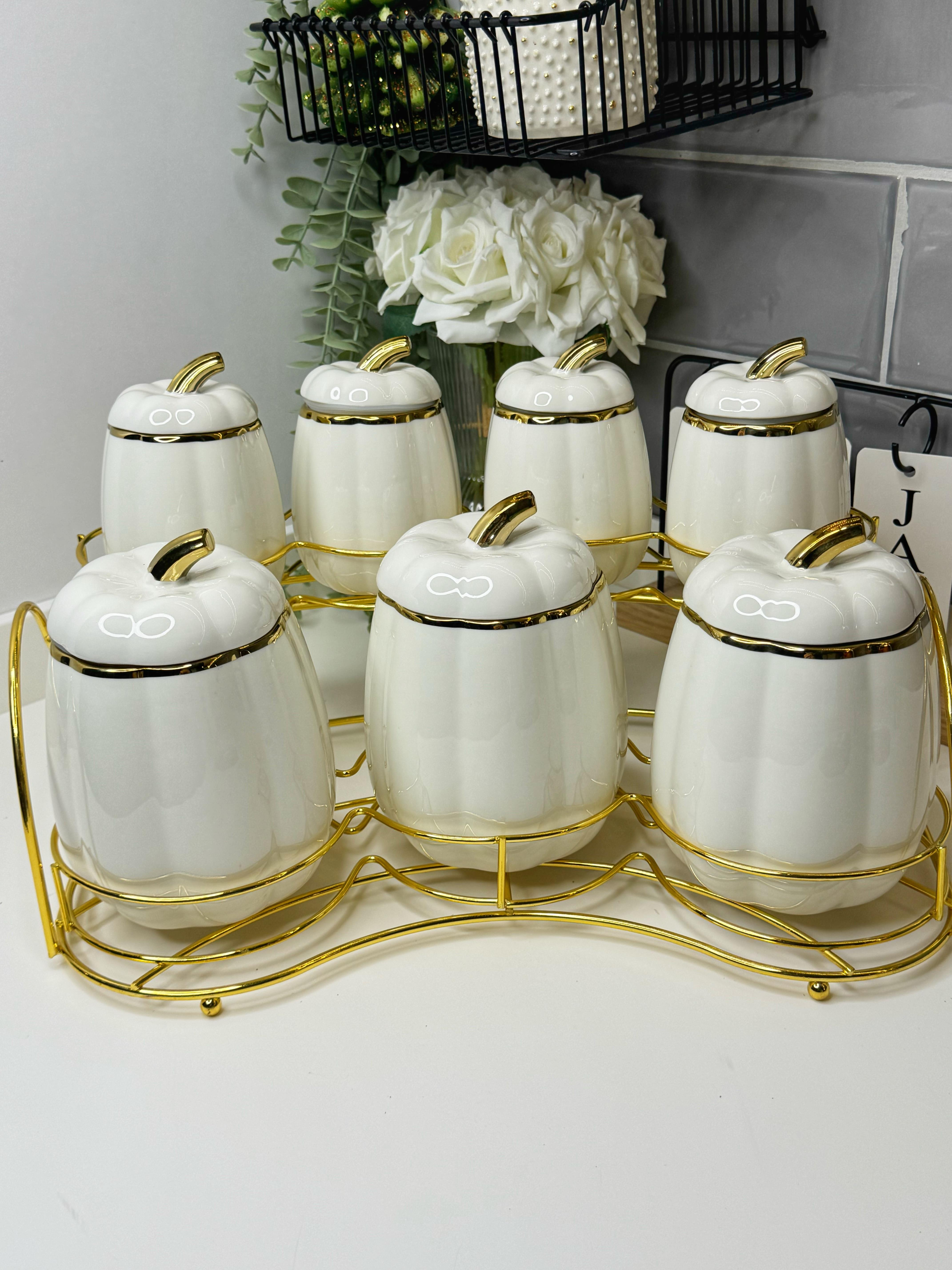 Standlı Porselen Kabak Baharat Takımı Beyaz